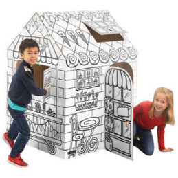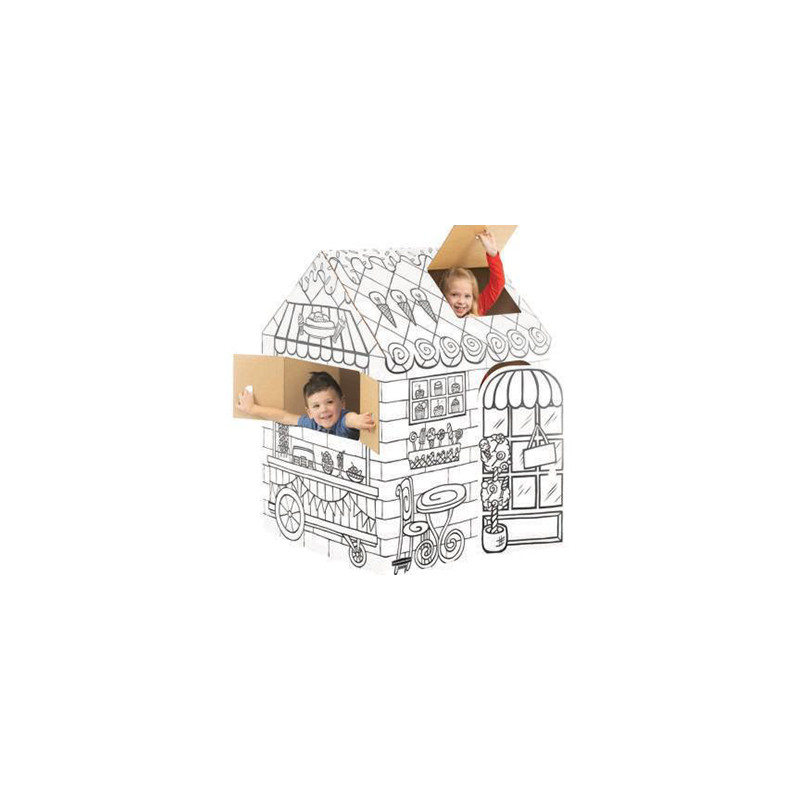Horas de diversão a brincar com estas casinhas fabricadas em cartão duradouro e reciclável com rebordos arredondados adaptados para crianças.
