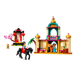 Com este set, as crianças podem começar a brincar rapidamente com as minibonecas Jasmine e Mulan da Disney, e também com as figuras de animais LEGO Khan, o cavalo, e Rajah, o tigre.