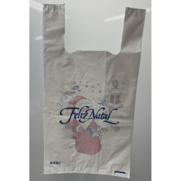 Sacos com alça feitos em polietileno de alta densidade, cor disponível atualmente em produção.